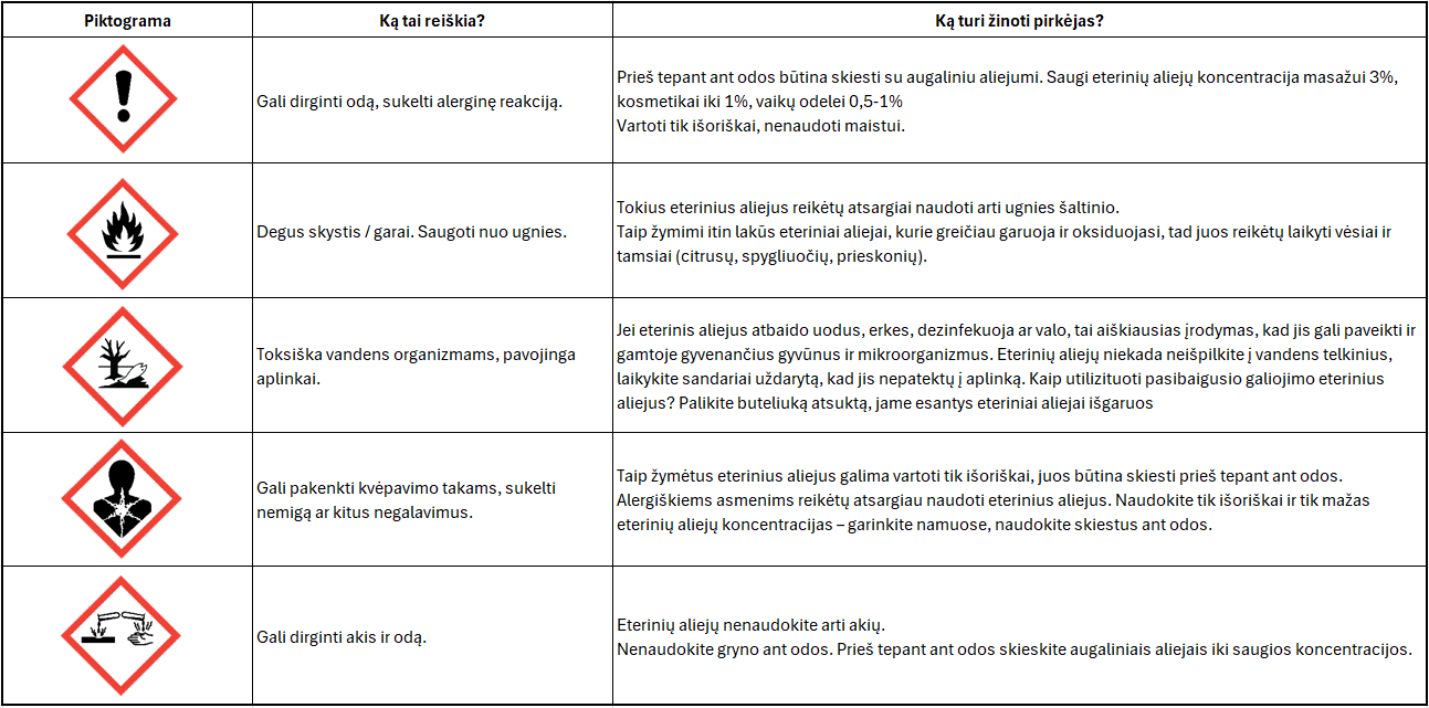 Veikliosios medžiagos: limonenas, β-Pinenas, γ-Terpinenas, cis-β-Ocimenas.